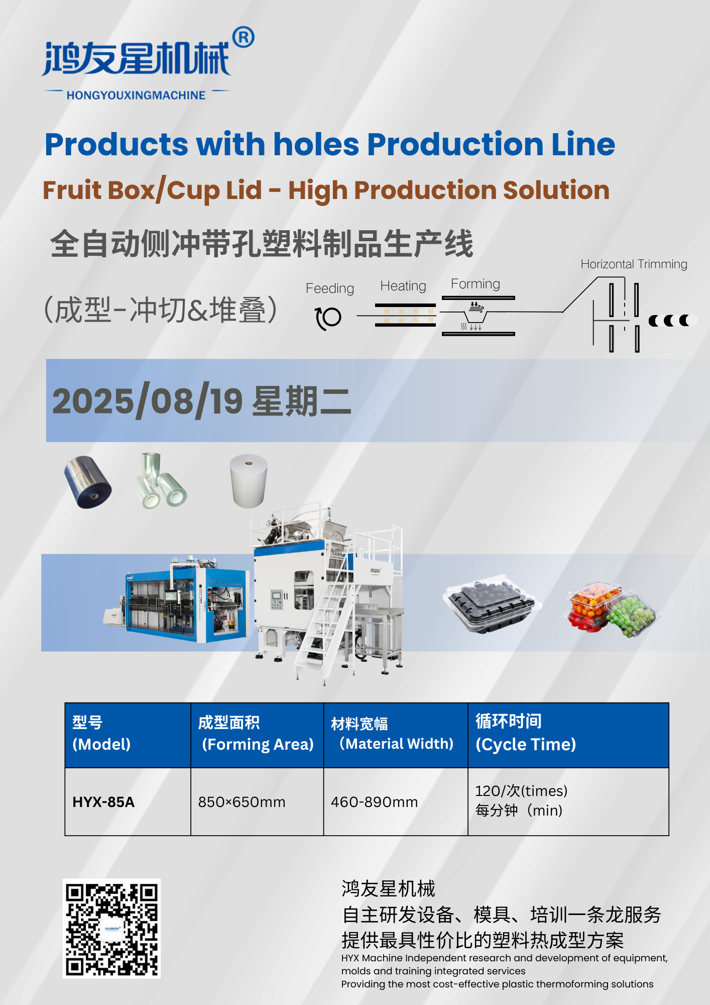 Bardak kapağı, çilek kutusu, yan ve alt delikli blister kutu üretimine uygundur, kabarcık şekillendirme makineleri (aynı zamanda kabarcık makineleri/delme test makineleri olarak da bilinir), karmaşık paketleme gereksinimlerini karşılayabilen yüksek düzeyde otomatik ekipmanlardır ve özellikle gıda paketleme endüstrisinde yaygın olarak kullanılır. Bu makineler yalnızca geleneksel kabarcık oluşturmayı desteklemekle kalmaz, aynı zamanda çeşitli ambalajlama işlevsel gereksinimlerini karşılamak için yan ve alt delikler gibi çeşitli delik konumlarını hassas bir şekilde oluşturur.